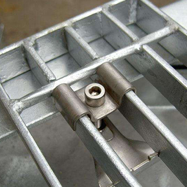 钢格板固定方法:可选用焊接和安装夹(steel grating installation clip)紧固两种方法。焊接的优点是永久固定,不会松脱;安装夹的优点是不破坏热浸锌层及拆卸方便。最安全的方法是不用下夹,直接将螺钉头倒焊在梁上,保证钢格板不会因安装夹松脱而从梁上滑落。